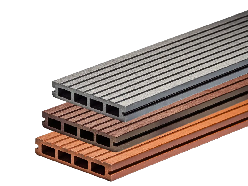 Decks compostos de madeira ecológica e HPDE com acabamento ripado e diferenciado, diversas cores e grande resistência a ambientes externos.