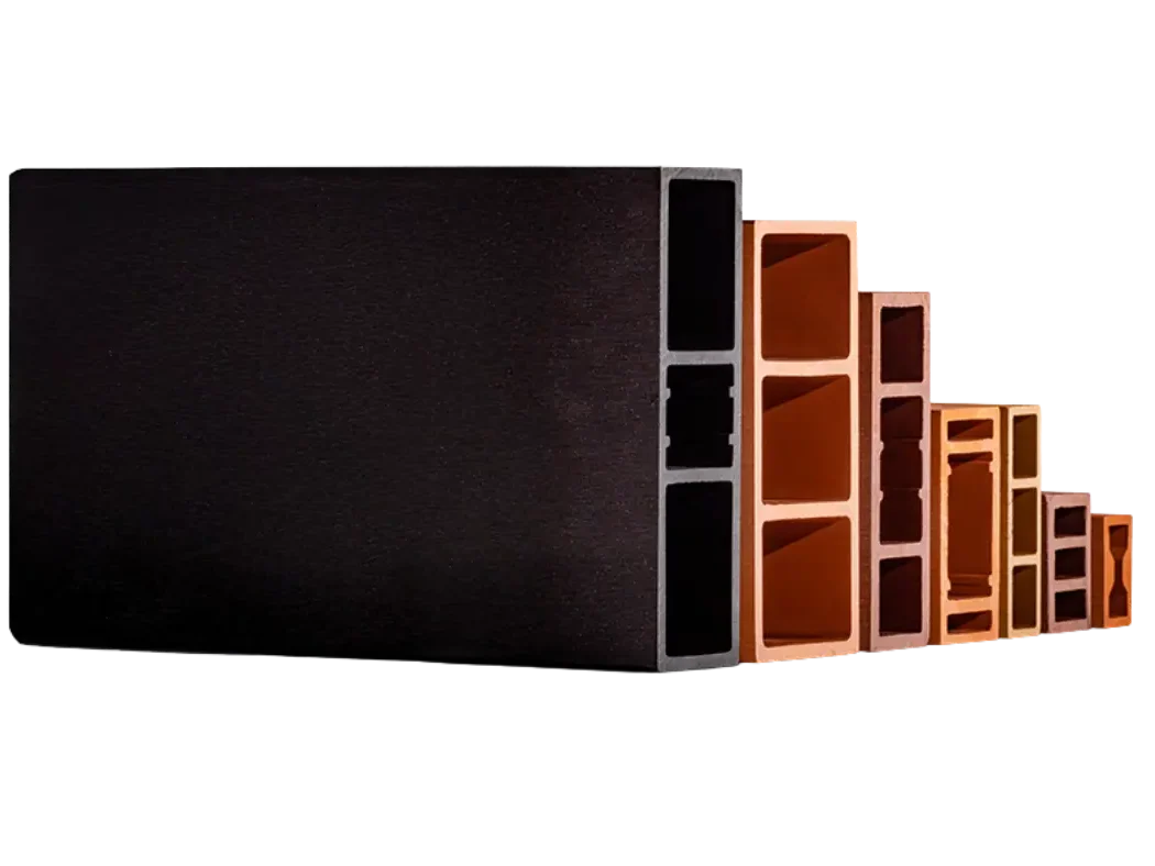 Brises compostos de madeira ecológica, WPC e Filtro UV para exteriores com acabamento natural, resistência às condições climáticas e uma ampla cartela de cores.