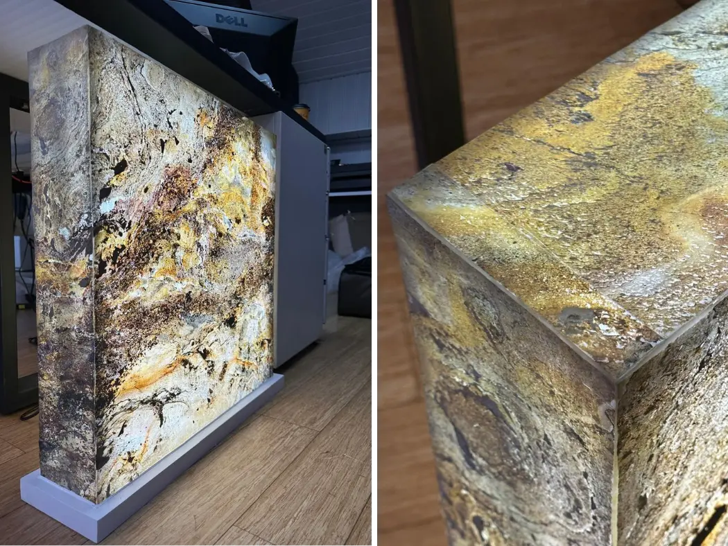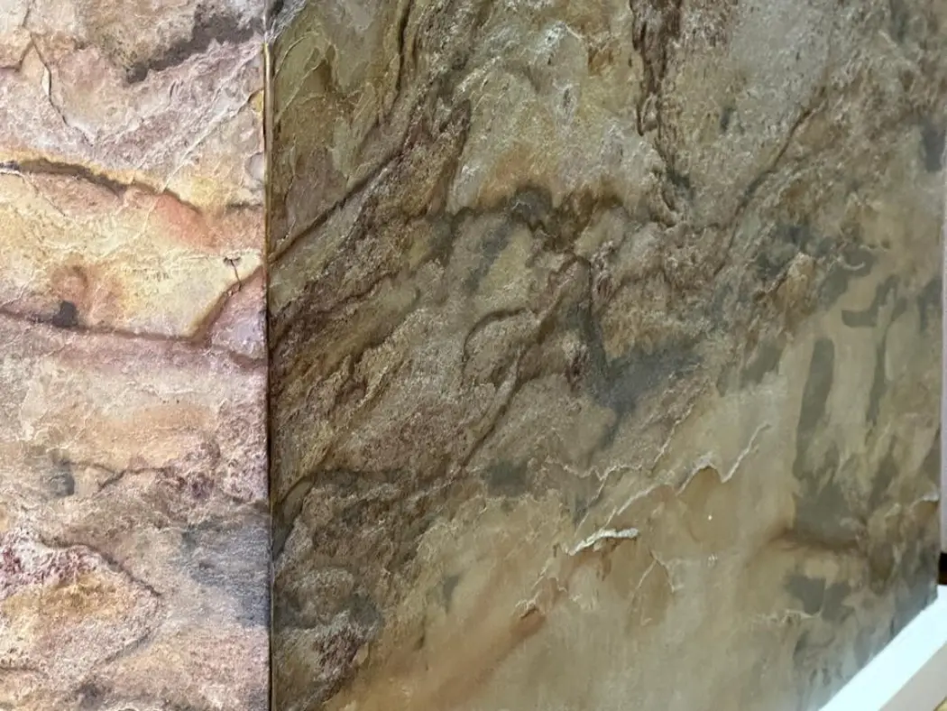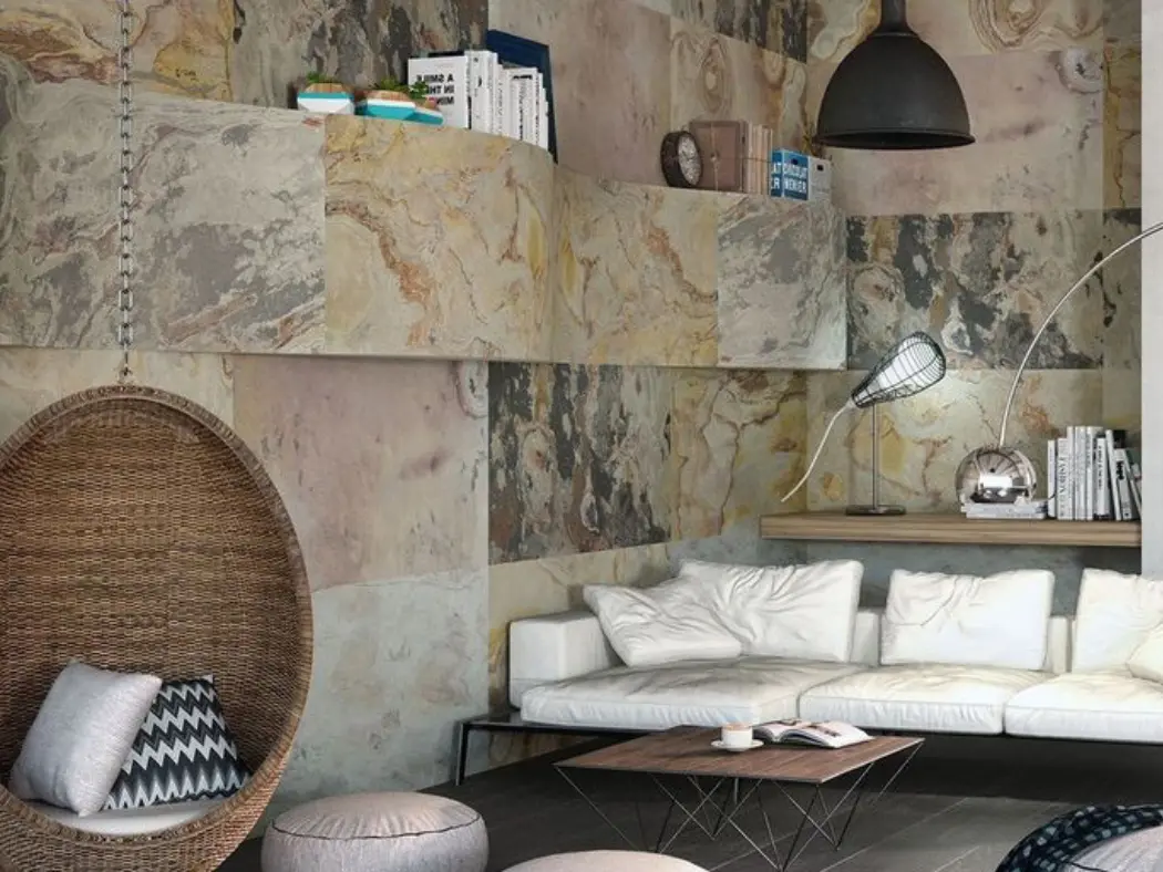 Arkostone é um revestimento leve e flexível feito de pedra natural, produzido por meio de um processo de laminação que separa uma fina camada de quartzito ou ardósia. Essa camada é combinada com resina e fibra de vidro, conferindo ao material resistência e versatilidade. Arkostone pode ser aplicado em praticamente qualquer tipo de superfície de construção e oferece diversas vantagens, como durabilidade, impermeabilidade e fácil instalação e manutenção.