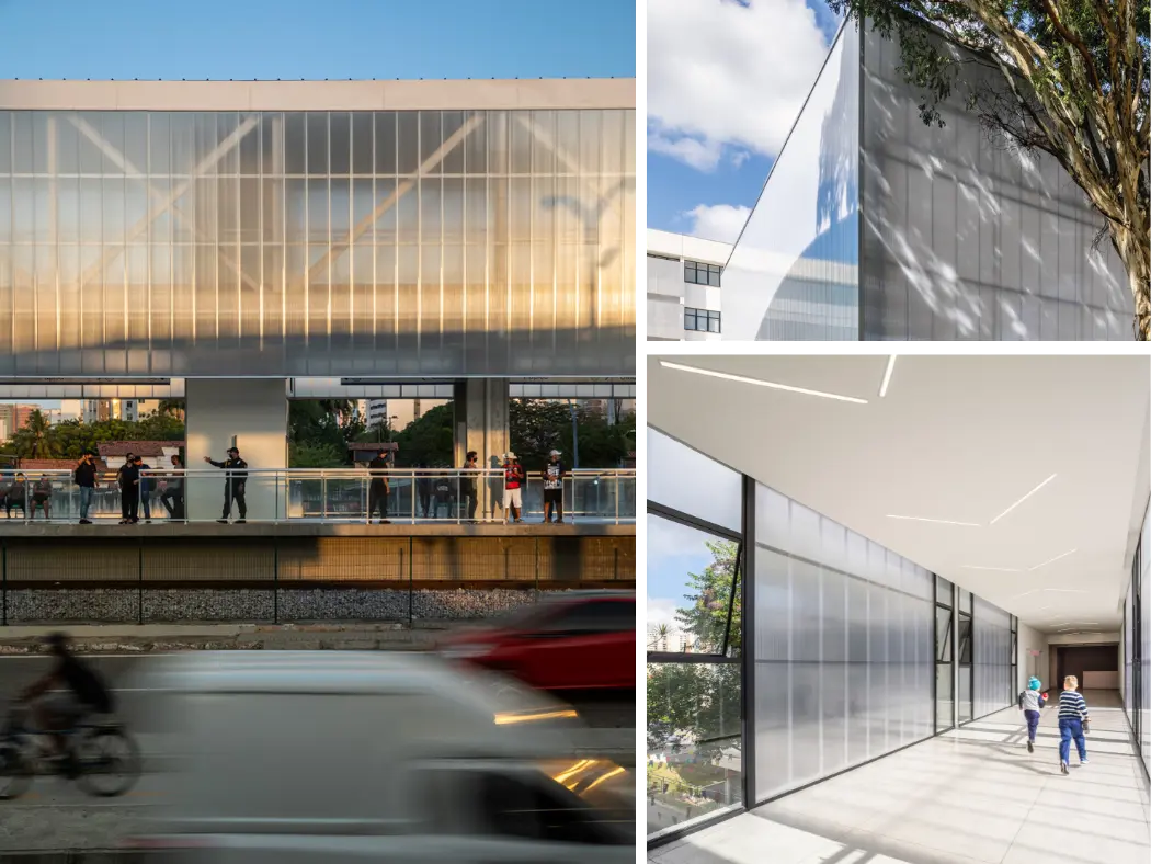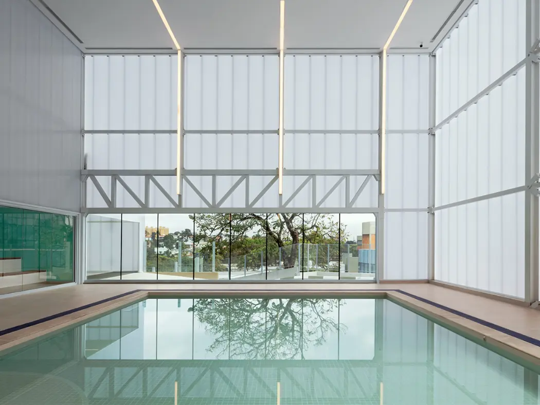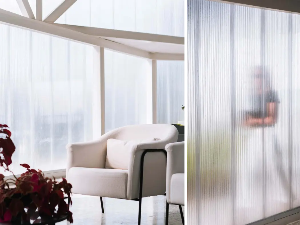 Painéis compostos de policarbonato estrutural translúcido ou leitoso, para fachadas e divisórias duráveis e fáceis de instalar. Ideais para obras com projetos luminotécnicos específicos, possuem filtro UV nas faces visíveis, o que lhes confere resistência ao sol sem perder a coloração.